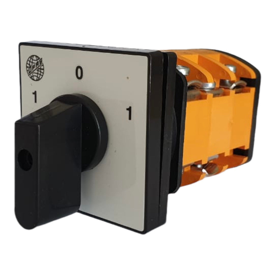 Reverse cam rotation switch designed to change the direction of rotation of electric motors.