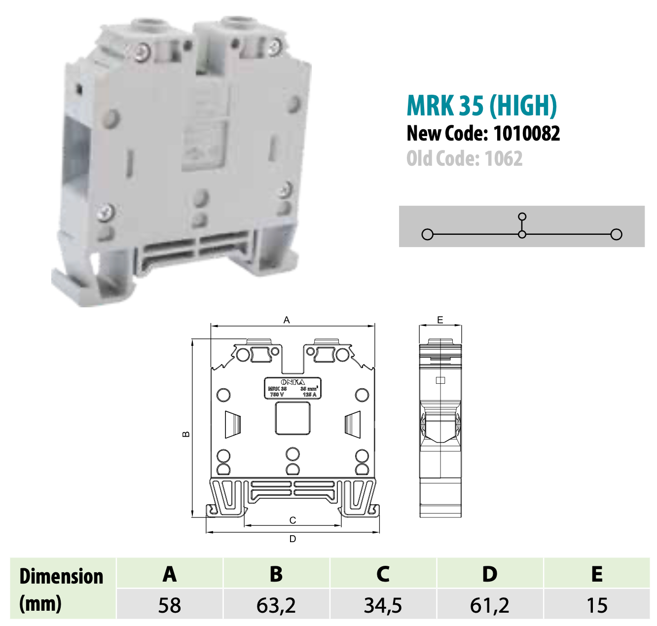 ONKA 35mm2 screw rail terminal block DIN rail terminal 2-wire gray, 1010082