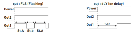 Time relay with two functions - an on-delay function and a cyclic relay function.