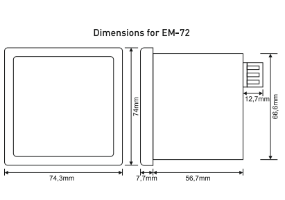 - (EM-06 och EM-72), indirekt mätning 5/5...9995/5A (EM-06 och EM-72), 1A - 100A (EM-100D) , 2-250A (EM-250D);