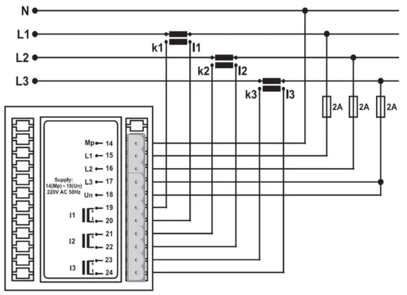 Vanligtvis används denna multimeter (EM-06/EM-72) med strömmätningstransformatorer - 60/5 75/5 100/5 150/5 200/5 250/5 300/5 400/5 500/5 600/5 800/5 1000/5 1500/5 eller liknande. Du kan köpa sådana transformatorer i vår e-shop,