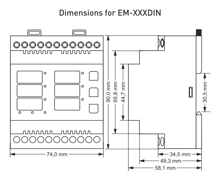 - Mätningstransformator ingår (EM-100DIN och EM-250DIN).